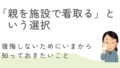 老人ホーム 「親を施設で看取る」という選択。後悔しないためにいまから知っておきたいこと はじめに「そろそろうちの親も老人ホームを考えないといけないけど、最期まで面倒を見てもらえるのかな?」そんなふうに、老人ホームへの入所を考え始めたときに「最期まで施設でみてもらえるの?」「いよいよ悪くなったら、どうやってお世話してくれるの?」... 2025.09.08 老人ホーム